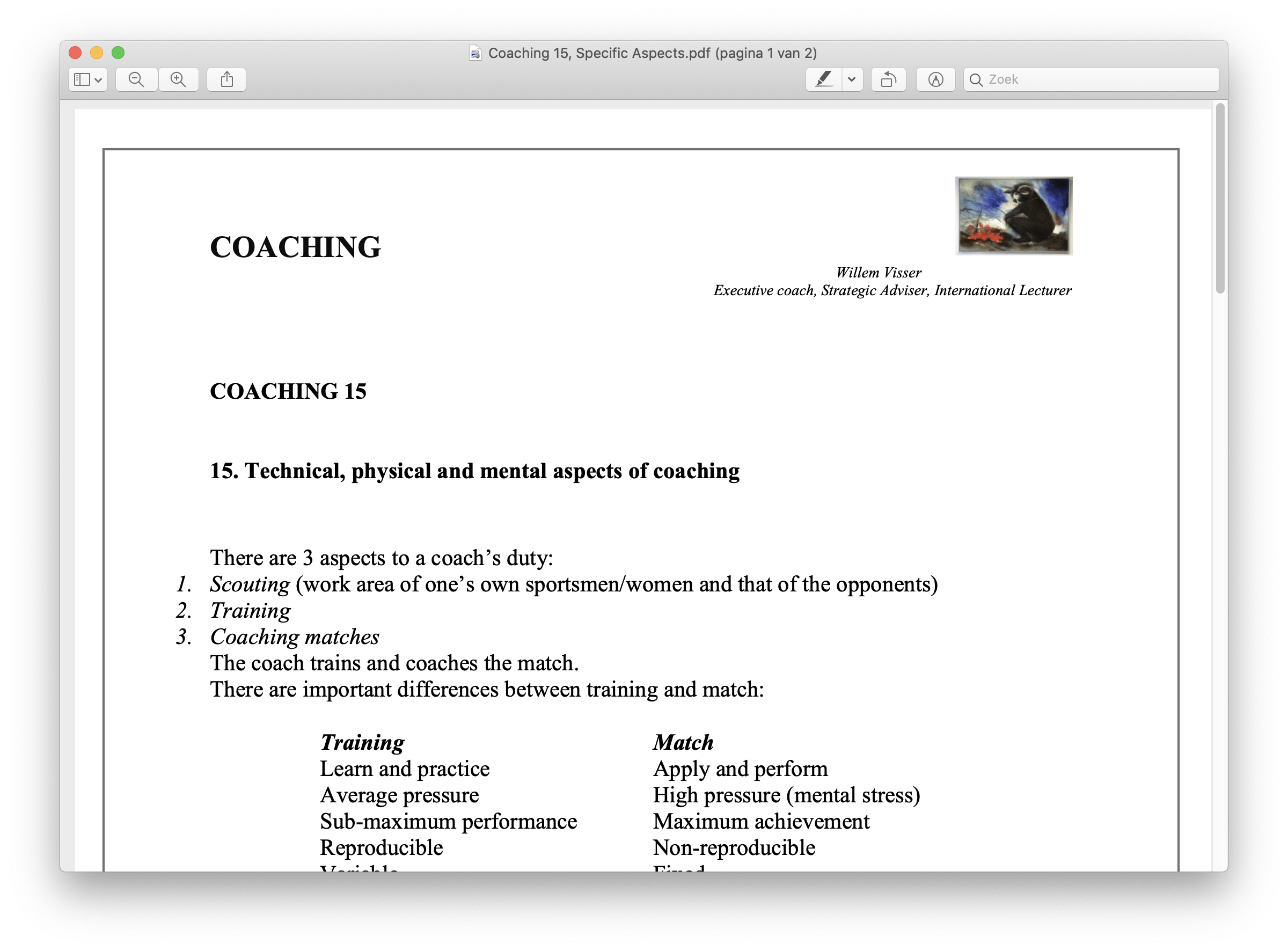 1. Scouting (work area of one’s own sportsmen/women and that of the opponents)